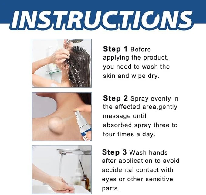 Simply spray twice a day on affected areas and let the formula do its magic — no mess, no effort, just results! 💪